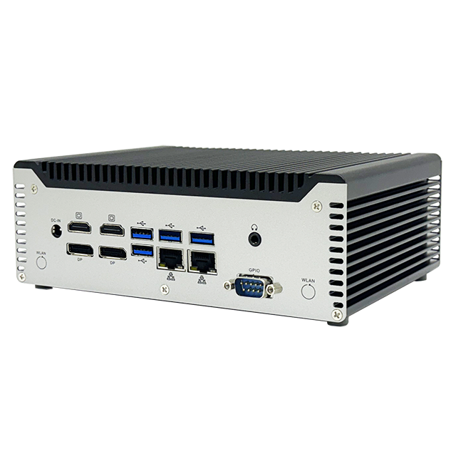 This fanless embedded computer is powered by an Intel® Tiger Lake i5-1135G7 Processor with a clock speed of 2.40GHz, support for up to 64GB of DDR4 3200MHz memory through dual-channel SO-DIMM slots, features two HDMI 2.0 ports and two DP 1.4 ports, supporting up to four 4K HDR displays or a single 8K SDR display.